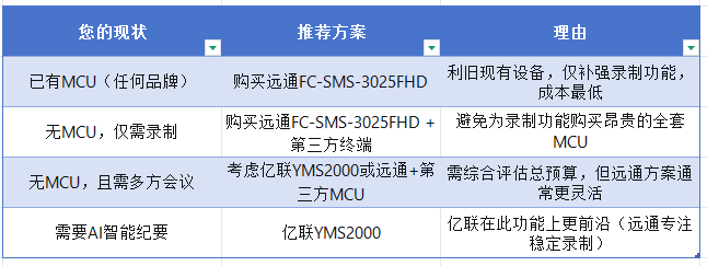 在录播服务器市场中,亿联YMS2000(MCU内置录播)与FARCOM远通FC-SMS-3025FHD(专用录播服务器)常被放在一起比较。以下是详细对比。核心参数与功能对比性价比场景对比测评结论:如果您是系统集成商或已有MCU的大型企业,需要高并发、跨品牌录制,FARCOM远通FC-SMS-3025FHD凭借25路并发、端口镜像、H.265编码和成本优势,是更具性价比的选择。